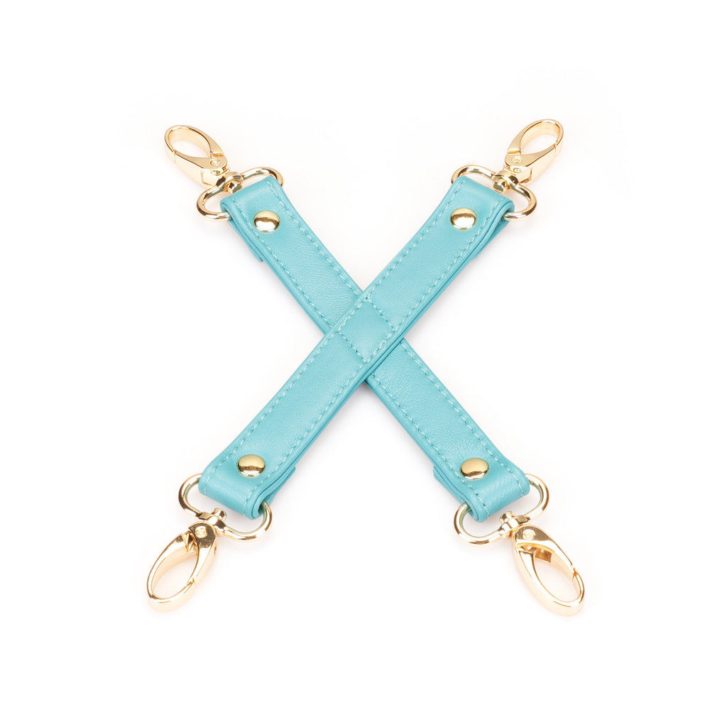 Descend into the depths of sensation with our Siren's Cove collection, where the allure of the forbidden meets unparalleled luxury. Each piece, sheathed in the mesmerizing hue of turquoise lambskin and accented by plush, matching fleece, is designed to caress the skin as it commands the senses. Gleaming golden hardware acts as both jewel and jailer, a stark, beautiful promise of control.