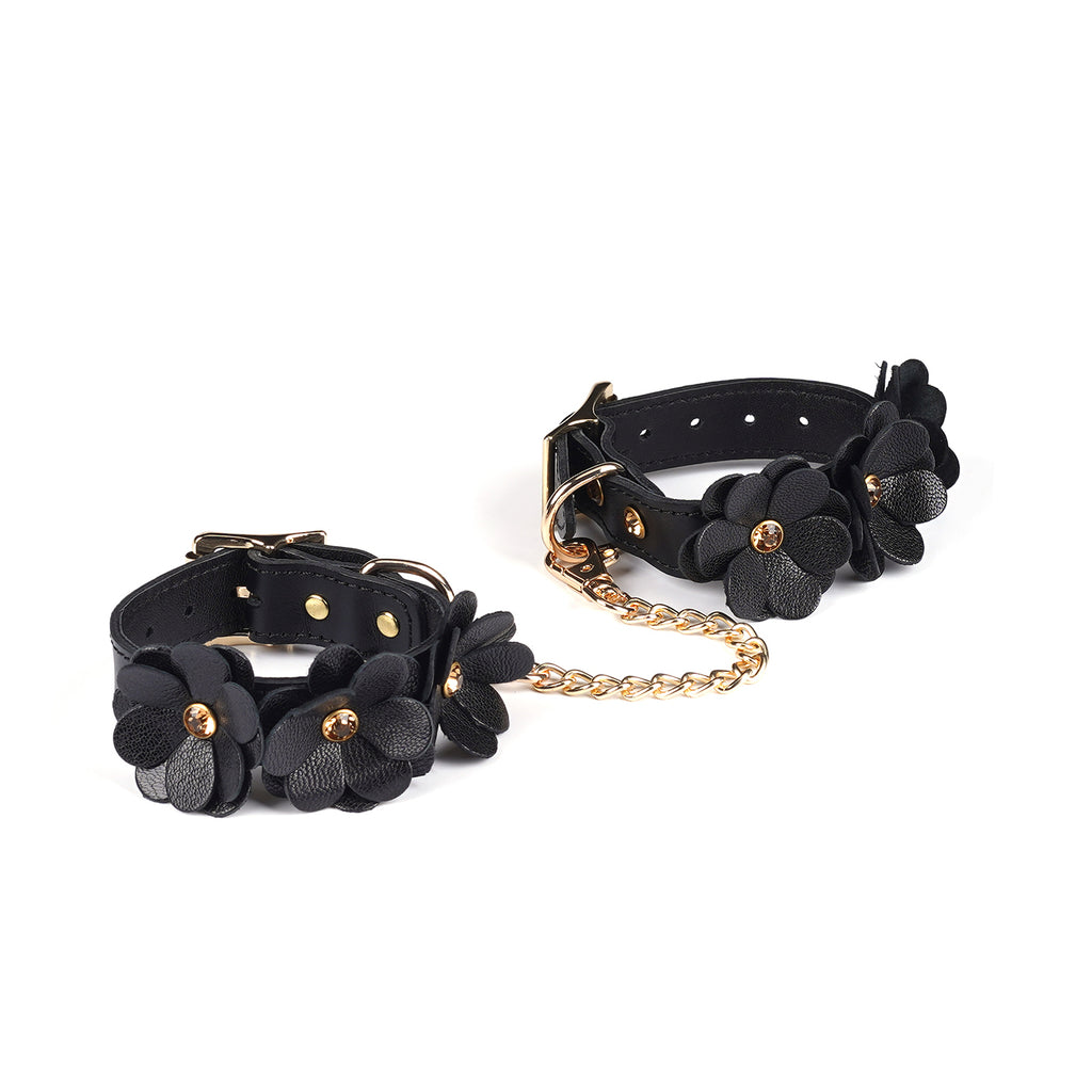 Look for unique hand restraints to add to your bondage collection. These soft genuine cow leather cuffs are as cute as they are sexy and can easily be worn for long periods of time without pain. A quick-release restraint chain is included, meaning restraint play is always only a moment away. Faux gemstones shine and glisten in the light, adding a charming accent to these cute but naughty cuffs.