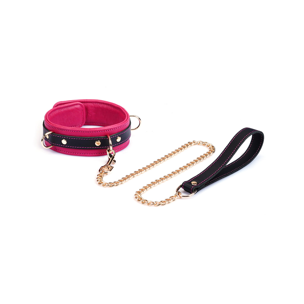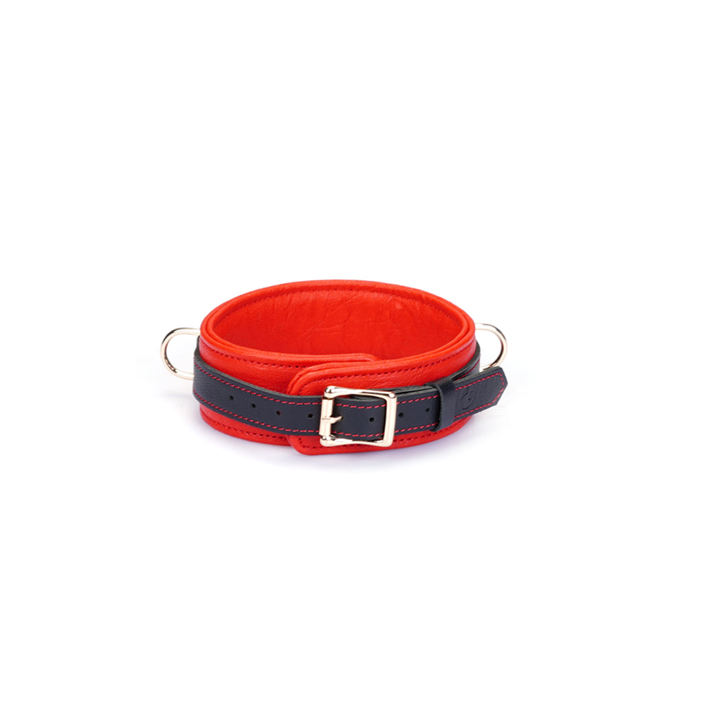 Command attention with our Adjustable Multi-Leather Collar, complete with a matching detachable lead. Designed for both guidance and elegance, the collar is constructed from soft, durable lambskin leather for all-day comfort. Striking black cowskin leather trim creates a captivating two-tone aesthetic, highlighting its meticulous craftsmanship.