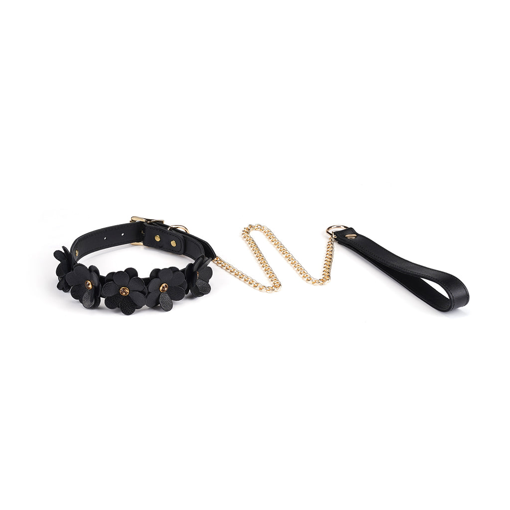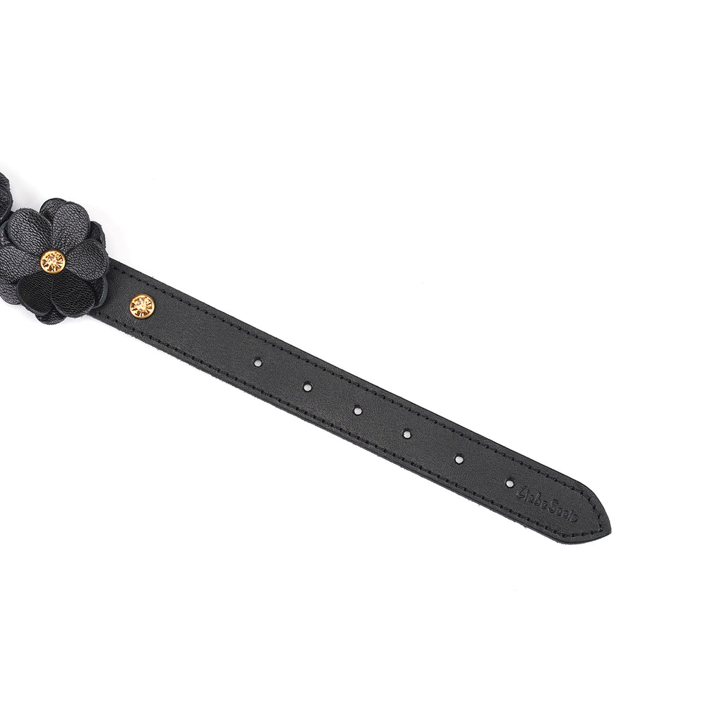 Soft leather flowers with faux gold gemstones add a cute and unique look to the standard BDSM collar.
