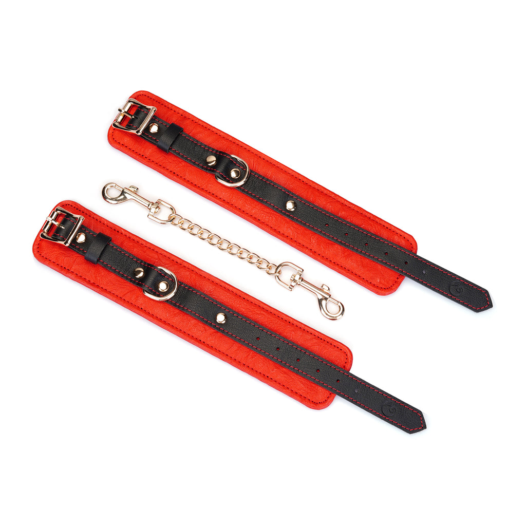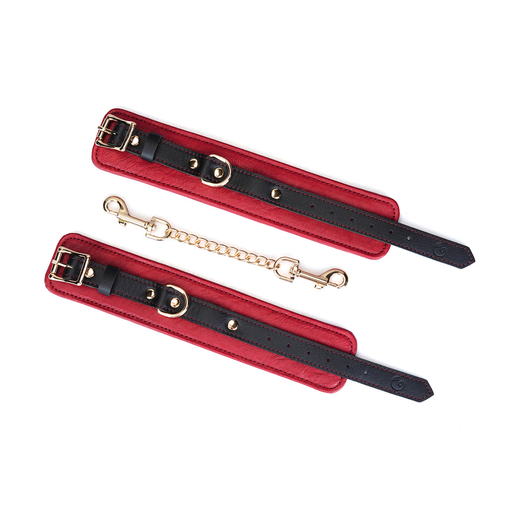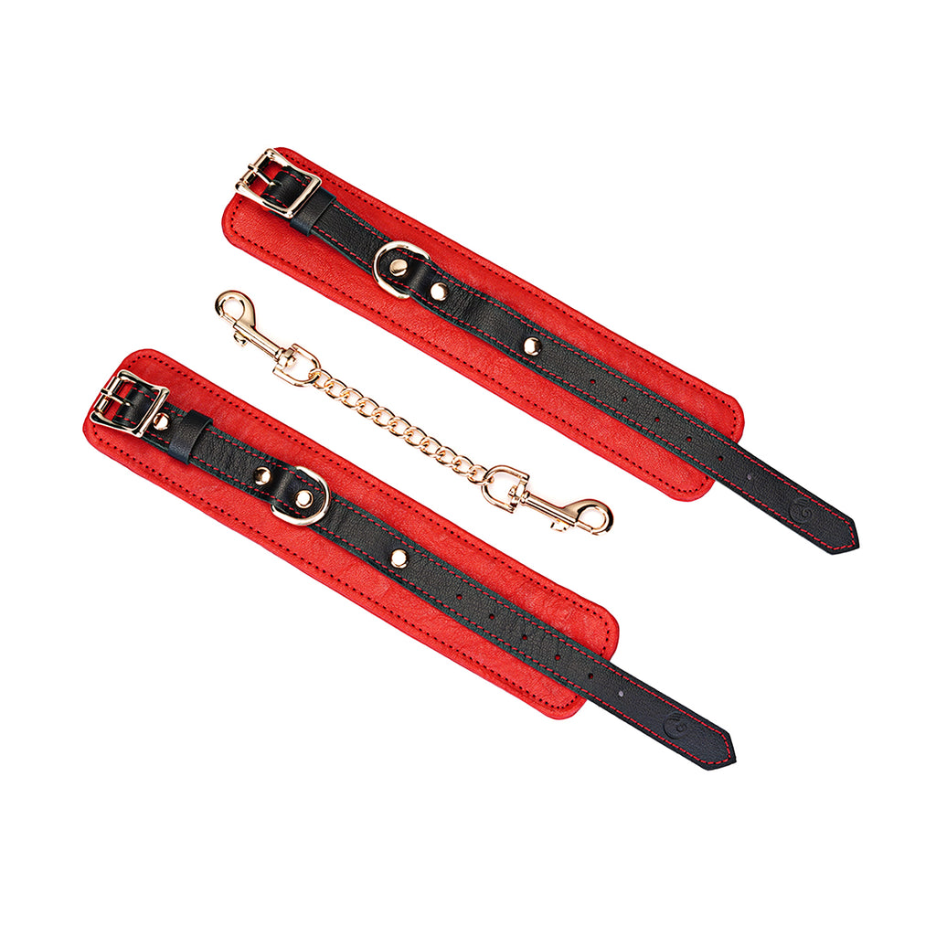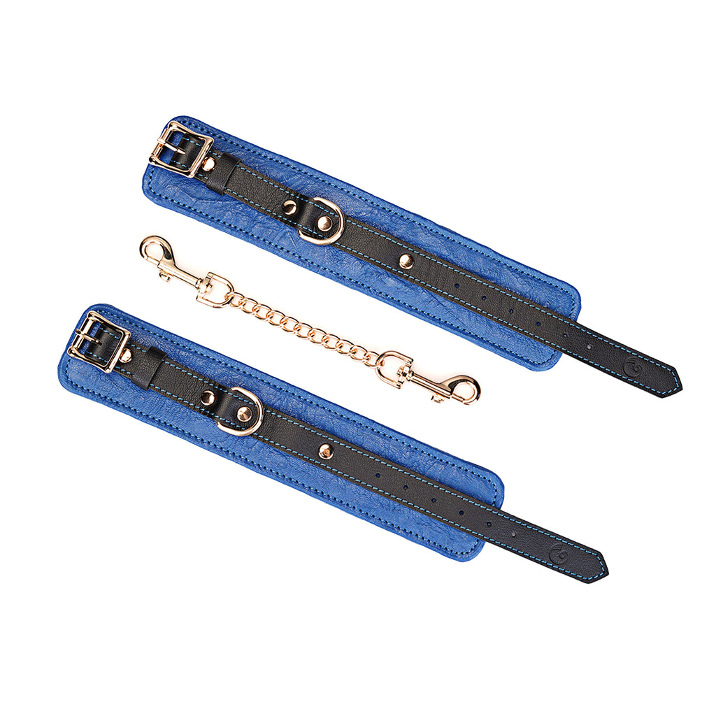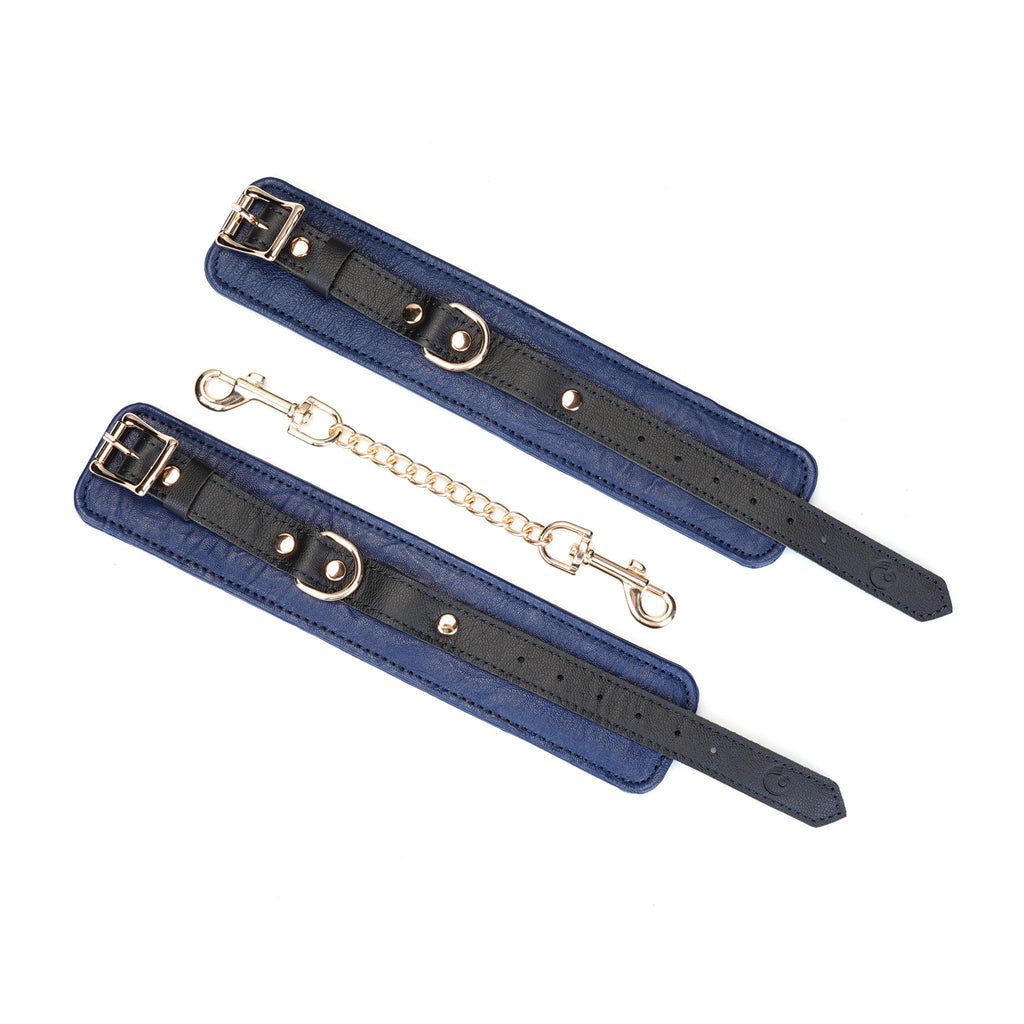 Experience the perfect blend of restraint and refinement with our Adjustable Multi-Leather Cuffs. Expertly crafted for superior comfort and style, each cuff features a supple lambskin leather body, providing a soft feel against the skin. Contrasting black cowskin leather accents add a bold, defining detail to the design, elevating its visual appeal.